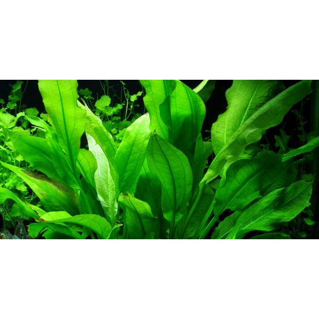 The Broadleaf Amazon Sword is one of the most known and popular aquarium plants. Its leaves are can grow up to 60 cm long, lending the plant a more dominant appearance. It is mostly delivered in its terrestrial form, with longer leaf stalks and shorter leaf blades (see the photo). After planting into the aquarium, it will develop much more elongate, short stalked submerged leaves.